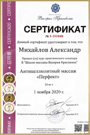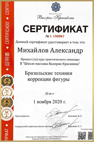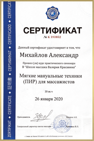 Александ, наш семейный массажист, я хожу к Александру более 6 лет, муж и свёкр чуть меньше и хочу сказать, что это лучший массажист, которого я знаю, настоящий профессионал своего дела. Постоянно развивается, не стоит на месте, знает много техник, имеет множество сертификатов. В кабинете уютная атмосфера. Я была у многих массажистов и не кривя душой могу сказать: "Саш, ты best of the best"